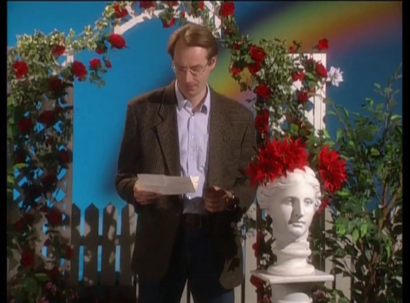 Zwischen Zitaten und Imagination, akademischem Sprech und Dilettantismus bürstet der Künstler Stephan Dillemuth (*1954) in seinem Film Elbsandsteingebirge 1789–1848 aus dem Jahr 1994 die deutsche Romantik gegen den Strich. Wie in einer aufgedrehten Geschichtsstunde collagiert der Film in inflationärer Dichte historische Begebenheiten und kanonische Werke aus Musik, Philosophie und Literatur des 19. Jahrhunderts mit punkigem Amateurschauspiel und retrofuturistischen Special Effects.