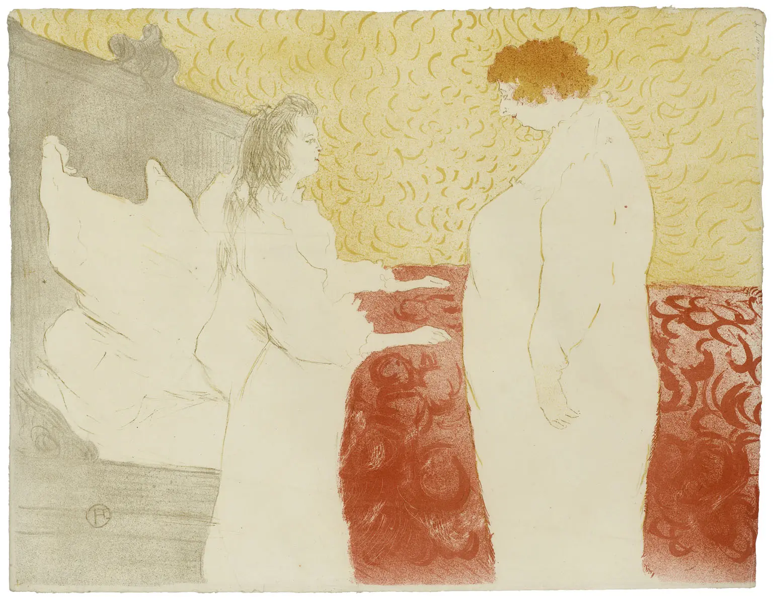 Toulouse-Lautrec hatte sich Mitte der 1890er Jahre intensiv mit der Thematik der Pariser Halbwelt und der Bordelle auseinandergesetzt. Seine Darstellungen vom Milieu im Vergnügungsviertel am Montmartre, insbesondere seine Plakate, machten ihn als Künstler der "Belle Époque" um die Wende vom 19. zum 20. Jahrhundert bekannt. In vielen Gemälden, Zeichnungen und Lithografien stellte er in groß angelegten figürlichen Szenen sowie in porträthaften Einzeldarstellungen das rege Treiben einer bunt gemischten Gesellschaft in den Cafés und Cabarets, den Ateliers und Galerien, den Konzertsälen, Salons und Tanzlokalen dar.
