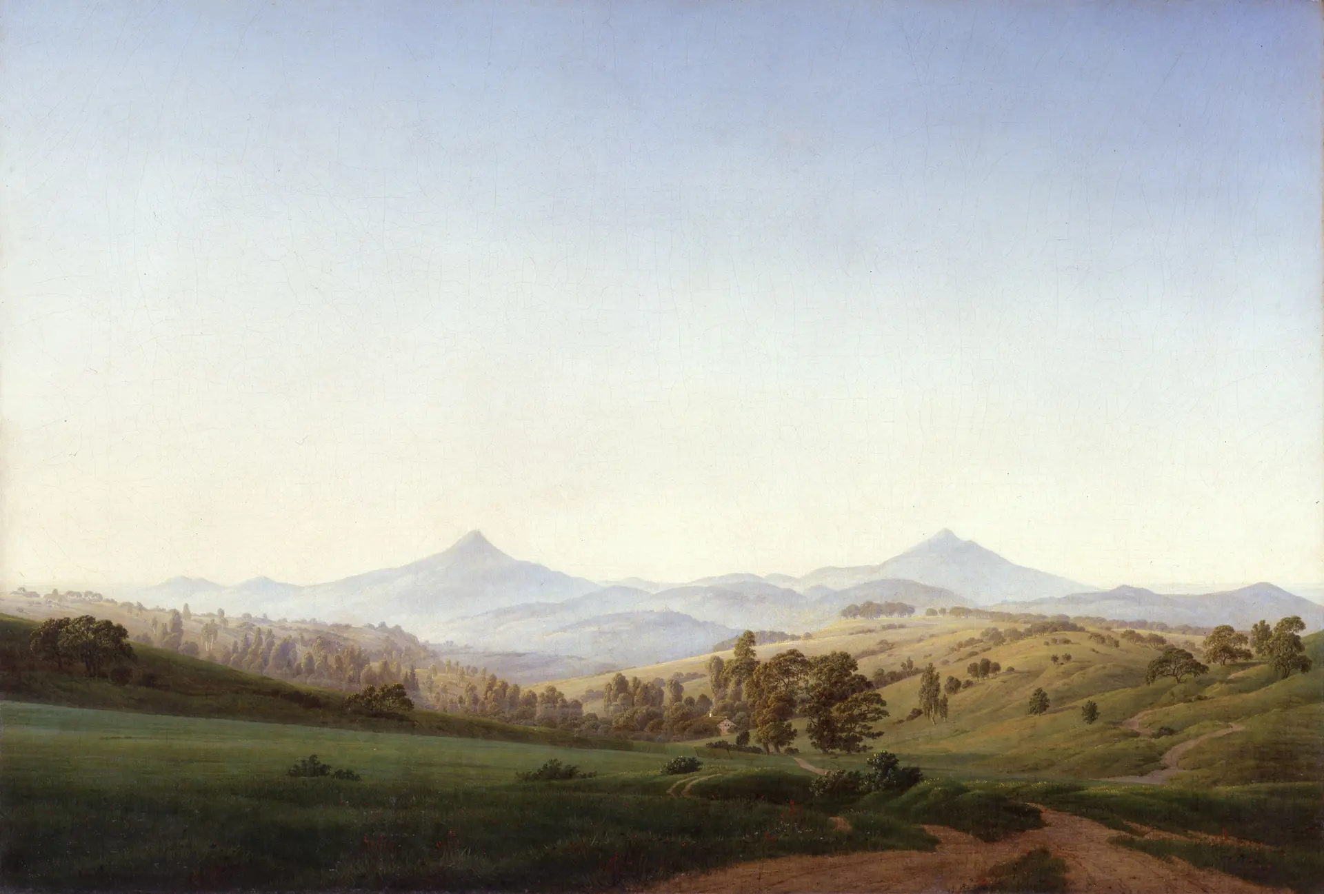 Den Ausgangspunkt der Präsentation markiert die Krise des Subjekts zu Beginn des 19. Jahrhunderts und der damit verbundene Kampf um Freiheit. Die freiheitlichen Ideen der französischen Revolution verbreiten sich über ganz Europa, gleichzeitig überzieht Napoleon Bonaparte den Kontinent mit Krieg. Die konservativen Regierungen in Russland und den deutschen Staaten zielen darauf, Bürgerrechte einzuschränken. Dieser Zeit des Umbruchs stellen die Künstler*innen der Romantik einen von Gefühlen dominierten künstlerischen Kosmos mit revolutionärem Potential entgegen. Ihre Träume von Freiheit verbinden künstlerischen Individualismus mit gesellschaftlichen Utopien. Es entwickelt sich eine neue, bahnbrechende Kunstauffassung mit einem ganz eigenen Stil in der Malerei, der Komposition und der Deutung klassischer Erzählungen der antiken und biblischen Geschichten, wie auch der wichtigsten Gattung dieser Epoche: der Landschaftsmalerei.